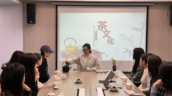 活動中,茶藝師現場展示宋代點茶等傳統技藝,女職工們認真觀摩青瓷蓋碗,學習斟茶禮儀,體味“專注、匠心”的茶道精神。在老師專業的指導后,職工們逐步了解要沖泡一杯溫熱的好茶,要經歷溫具、置茶、潤茶等多重步驟。就像日常工作,積累經驗,做好細節,苦澀后回甘,方能收獲馨香?;顒蝇F場茶香四溢,歡聲笑語不斷,工會還為女職工們準備了精致茶禮,讓文化體驗更有溫度。